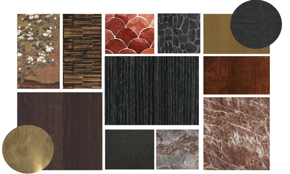 The restaurant’s aesthetic is intentionally moody and sophisticated, drawing subtle inspiration from Asian culture. The material palette includes black and cherry wood for warmth and contrast, Asian-inspired wallcoverings that add texture and authenticity,